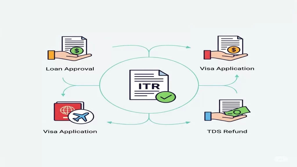 जब आप किसी भी बैंक से लोन लेने जाते हैं तो बैंक आपकी वित्तीय स्थिति देखना चाहता है। आपका नियमित आईटीआर आपकी आय और वित्तीय स्थिरता का एक मजबूत प्रमाण होता है। इससे आपको होम लोन, कार लोन या पर्सनल लोन आसानी से मिल सकता है।