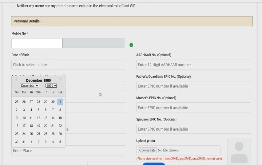 - अंतिम SIR में माता/पिता/दादा/दादी का नाम खोजें: यह विकल्प विशेष रूप से पारिवारिक रिकॉर्ड को लिंक करने के लिए है।