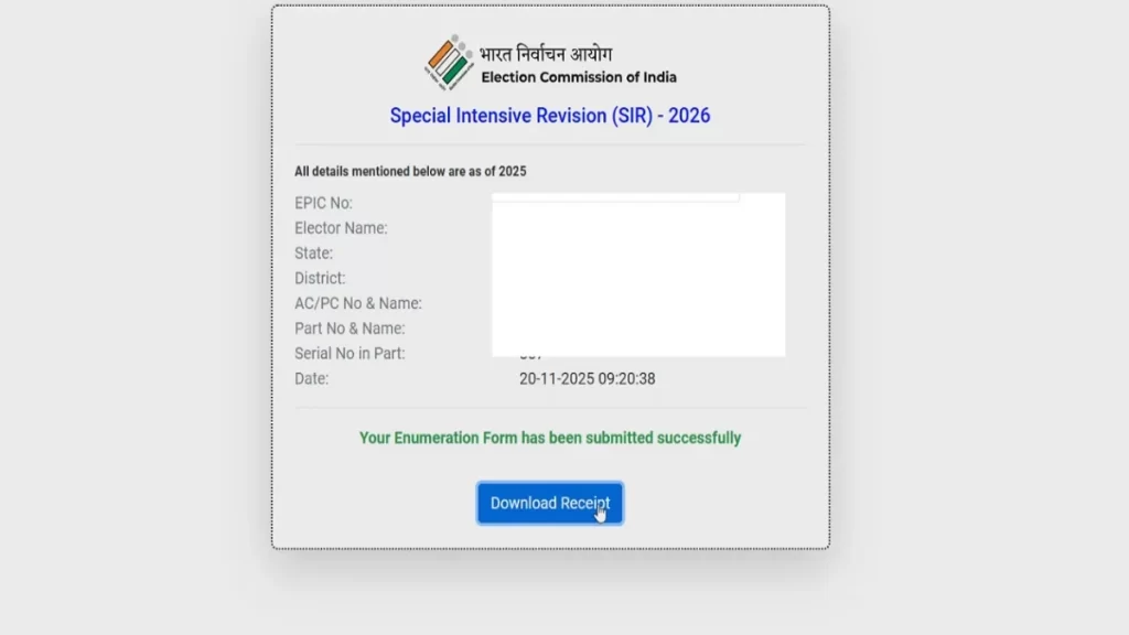जमा करने से पहले भरे हुए SIR फॉर्म का ध्यानपूर्वक पूर्वावलोकन करें। सभी जानकारियों की सटीकता की दोबारा जांच करें। प्रक्रिया पूरी करने के लिए घोषणा चेकबॉक्स पर टिक करें और ‘सबमिट’ पर क्लिक करें।